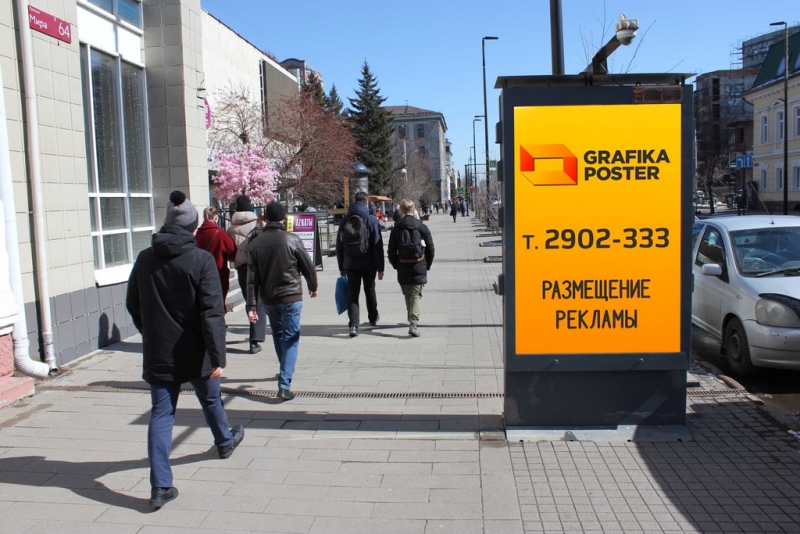 Конструкции установлены в культурно-историческом и административном центре Красноярска на пр. Мира и на остановке «Перенсона» на ул. Карла Маркса. Обслуживают основной общественно-деловой и гостевой трафик города.